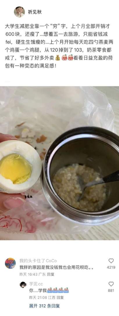 大学生减肥全靠一个穷字。