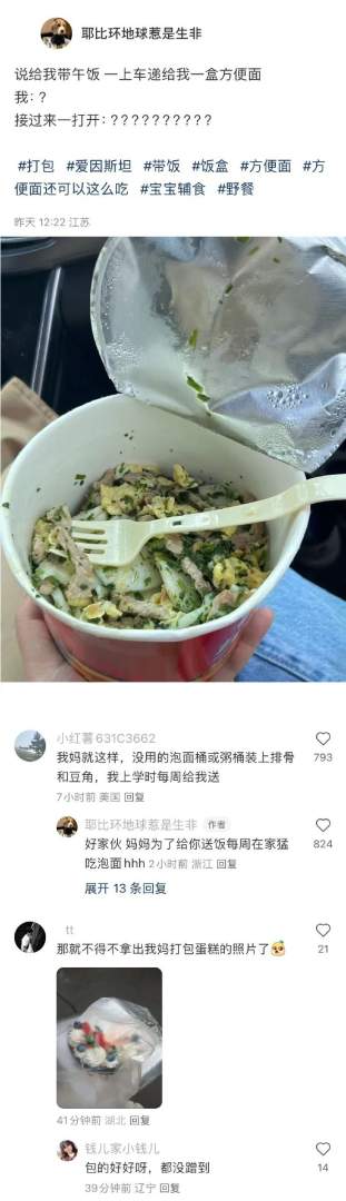 父母用泡面桶给我打包午饭。