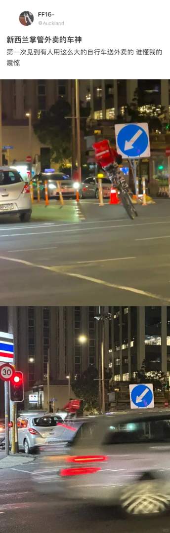 原来在新西兰送外卖是骑自行车。