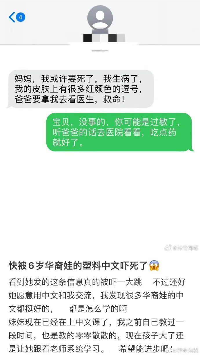 快被六岁的华裔娃的塑料中文吓死了。