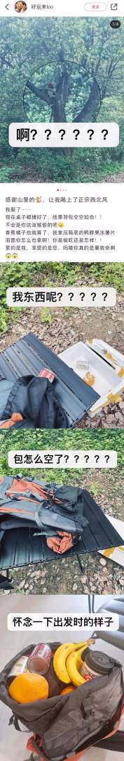 爬个山背包背掏空了。