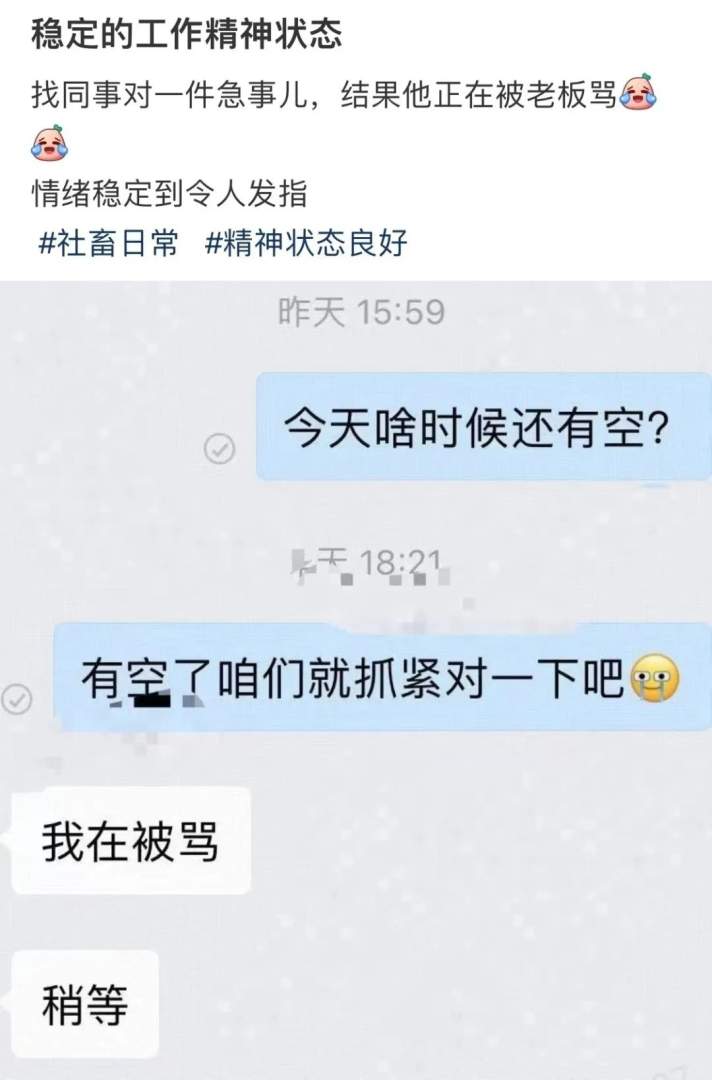 同事的情绪已经稳定到令人发指。