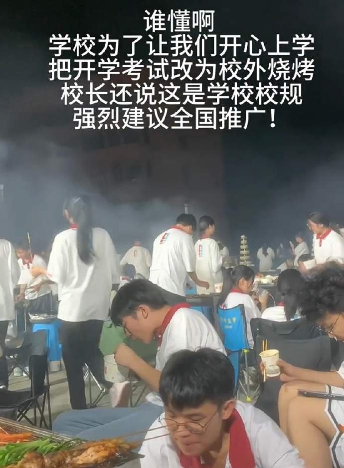 开学考试变校外烧烤。