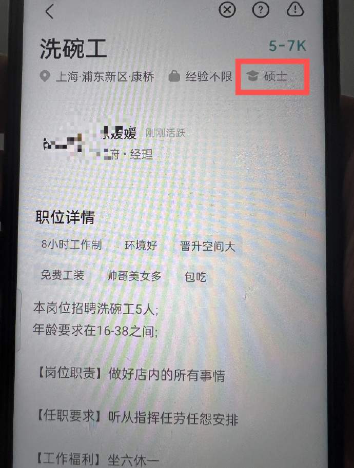 现在洗碗工都要硕士学历了吗?